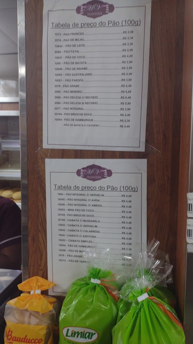 The menu offers a variety of bakery products alongside a buffet-style breakfast selection and fresh produce. Visitors can expect options suitable for breakfast and light meals, including a buffet de café da manhã and fruit salads. There are also sandwiches and juices available, with a focus on freshly prepared items.
